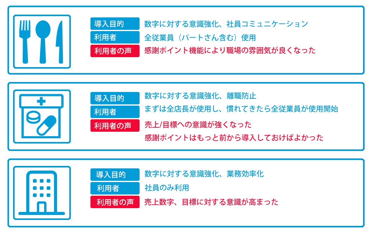 感謝の見える化、貢献の見える化に繋がり、店舗内コミュニケーションが円滑になります。